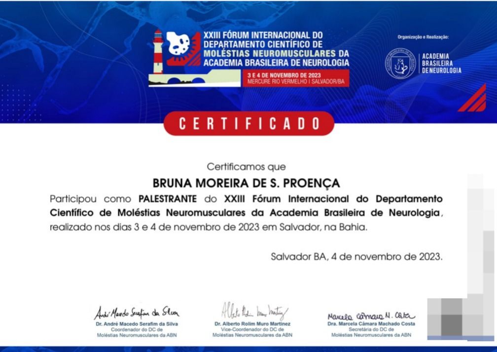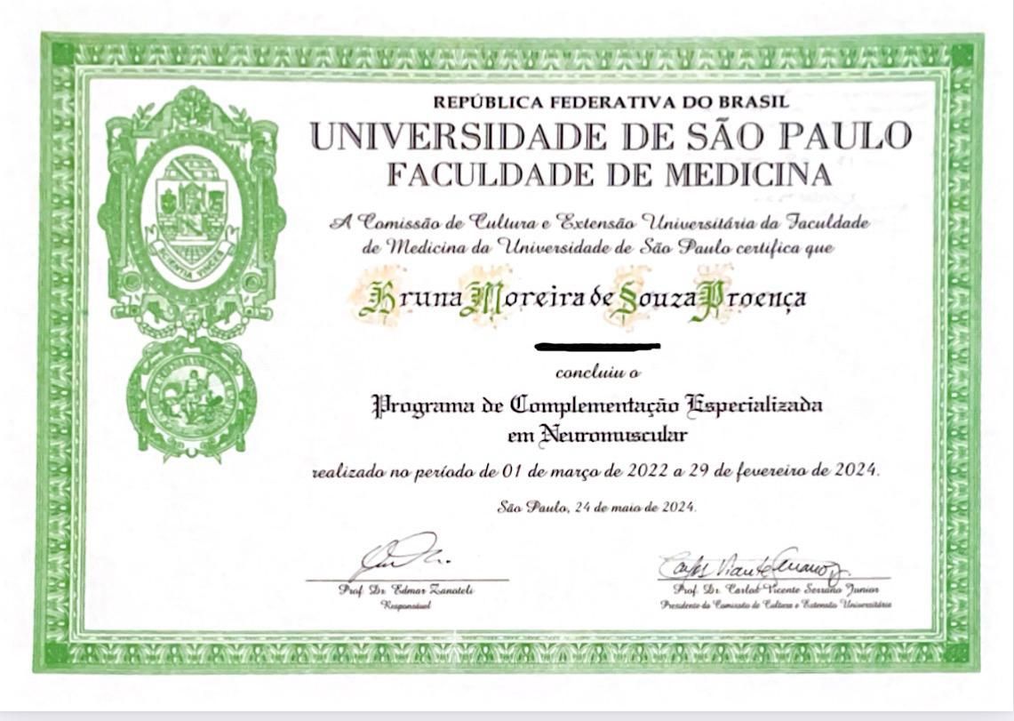 * Fellowship em Doenças Neuromusculares pelo Hospital das Clínicas da FMUSP